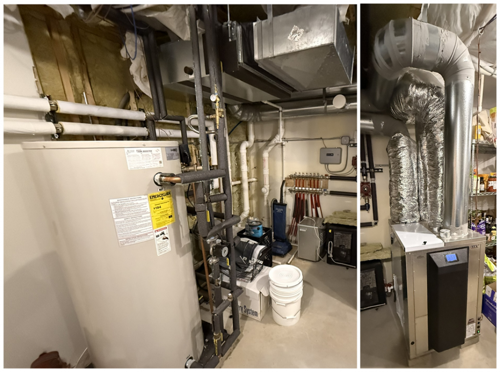 The house incorporates key passive building features, including insulated concrete form (ICF) walls that provide both continuous insulation and thermal mass, along with triple-pane windows that enhance thermal performance. Careful detailing achieved an ultra-low measured airtightness of 0.6 ACH50. Mechanical systems include cold-climate air-source heat pumps with two mini-splits for conditioning the main and lower levels, complemented by a carbon dioxide–based air-to-water heat pump that supplies domestic hot water and radiant heating. A rooftop solar PV array offsets the annual energy demand, allowing the home to reach net-zero operation. With robust construction and quality materials, the home is durable and resilient, reducing maintenance needs over its lifetime. The passive house design, paired with solar panels, keeps energy bills low. Extra electricity produced in the summer is credited through net metering and helps cover heating costs during the winter.